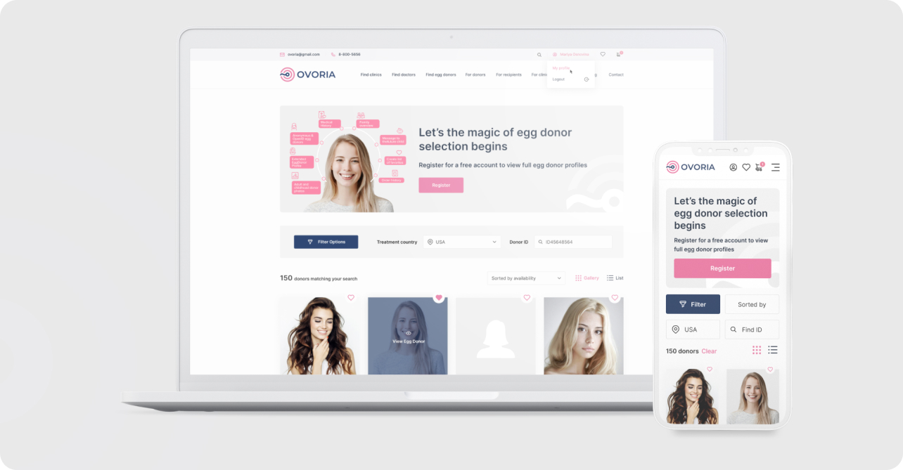 Create a user-friendly egg donor search catalog with an easy booking system both for infertility clinics and intended parents.